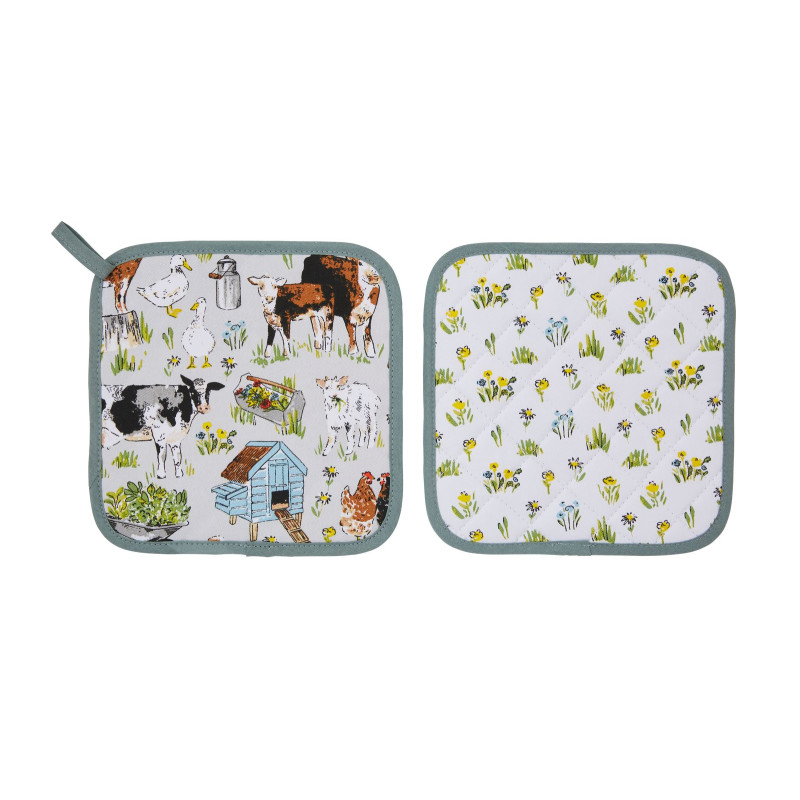 Skøn grydelap fra engelske Ulster Weavers med motiv foran og bagpå.