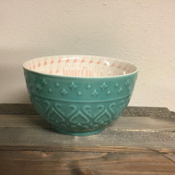 Blå skål i porcelæn - med mønster udenpå skålen og indeni.