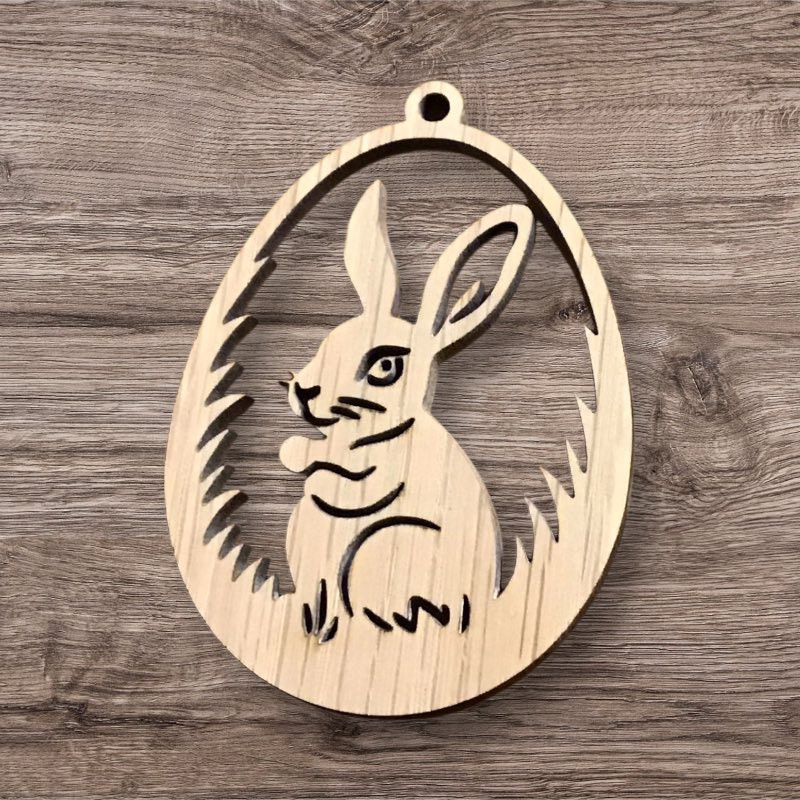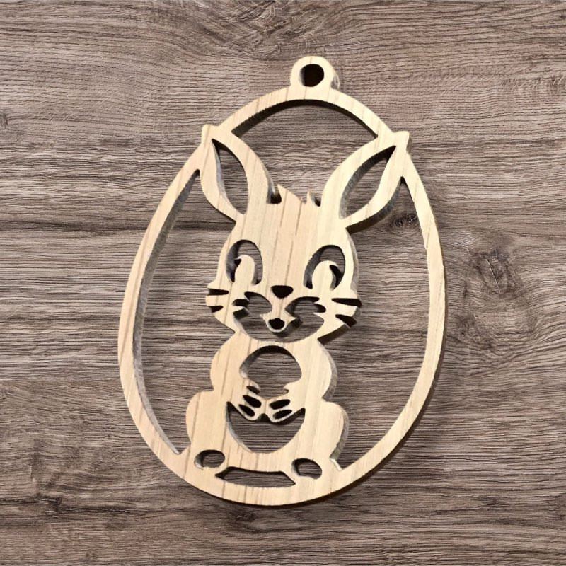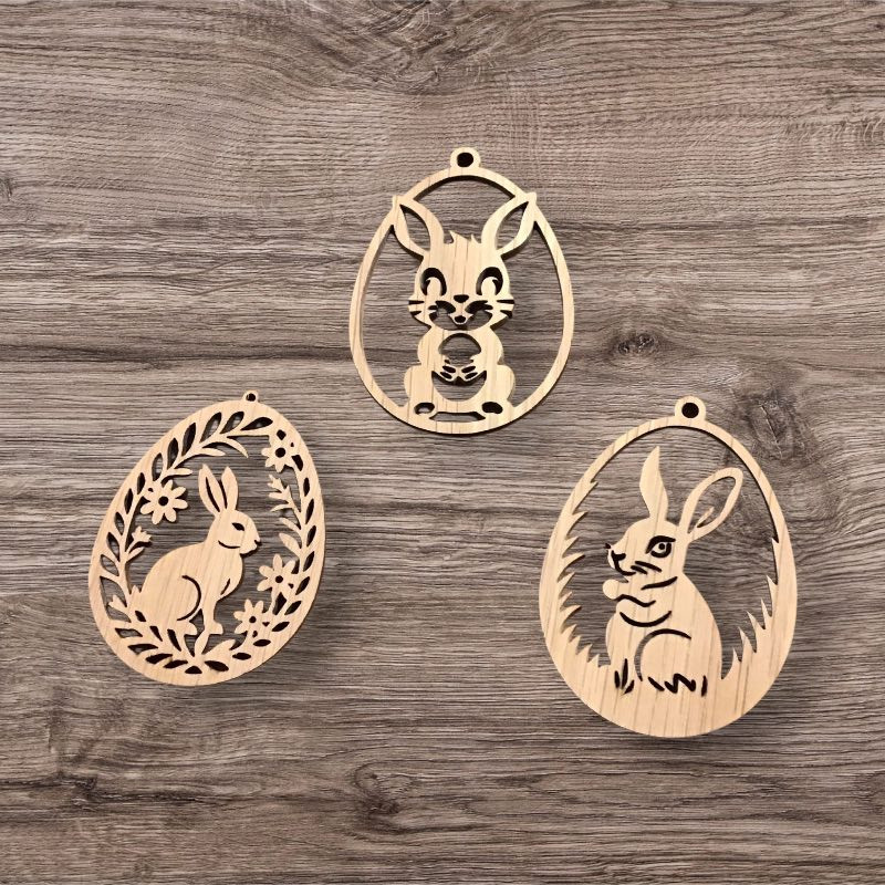 Fin påskepynt i træ - 3 stk. påskeharer udskåret i egefinér.