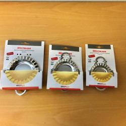 Derefter klappes formen sammen, og den overskydende dej skæres fra.