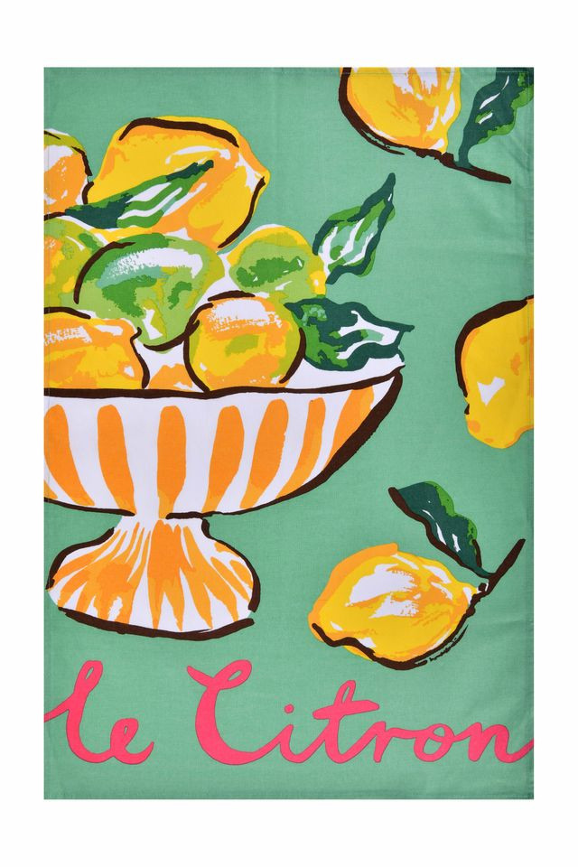 Skønt viskestykke med "smagen af" citroner - i gule og grønne farver.