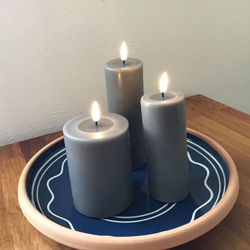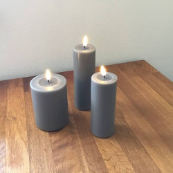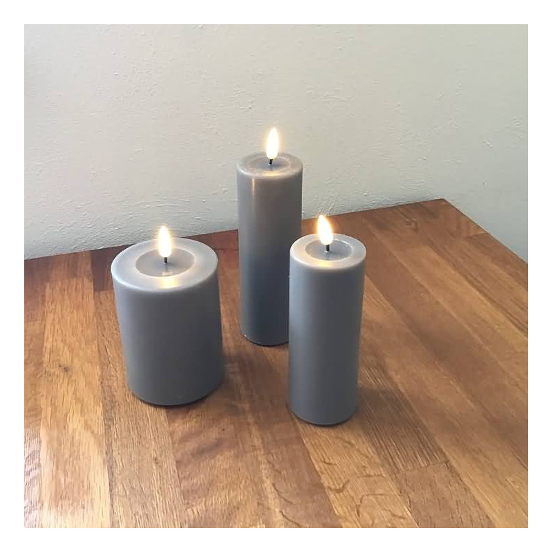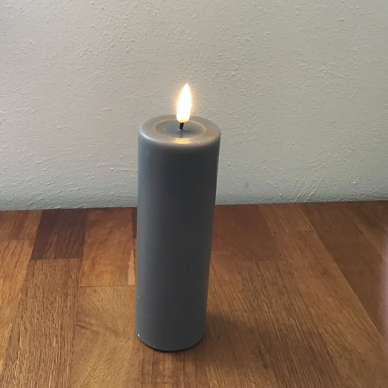 LED bloklys grå, 15 cm høj, Ø 5 cm